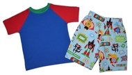 Plain coloured jersey cotton tshirt with cotton woven print shorts