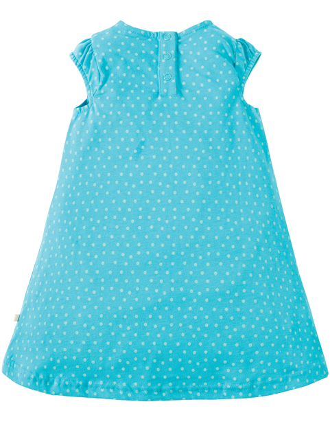 Updated design, Little Lola printed dress with applique and back neck fastening.