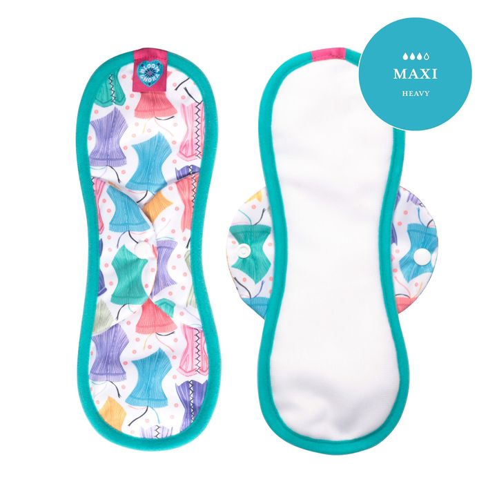 Nora pads have a white stay-dry top, a pretty print pul backing and a hidden layer of microfibre for absorbency . The unique stay-dry binding is the perfect barrier against leaks and keeps everything in the absorbent core. The stay-dry pads are quick drying and stain repellent. Popper tabs to hold them in place on your underwear.
